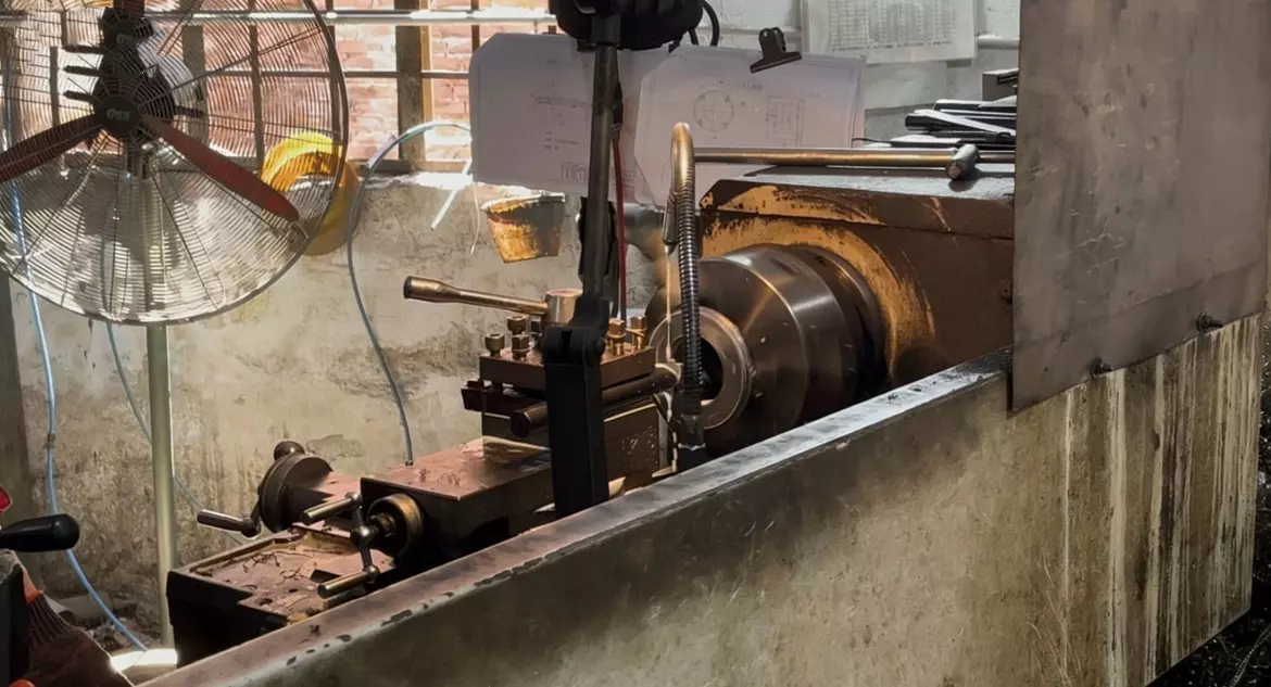 In the image above, you can see the critical process of metal turning. Our skilled technicians monitor the interaction between the cutting tool and the workpiece closely. Notice the constant flow of coolant; this isn't just for lubrication. By rapidly dissipating heat and flushing away metal chips, the cooling system prevents thermal deformation. This ensures that every component—from the main shaft to the grinding chamber—meets the exact geometric specifications necessary for a long service life and vibration-free operation.